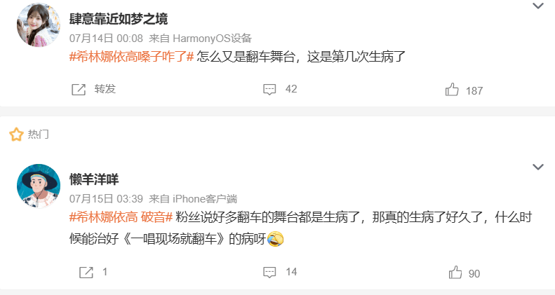 可是,她在演唱《与凤行》主题曲的时候,却翻车翻得很惨,虽然粉丝挽尊说她是因为生病导致嗓子出了问题。