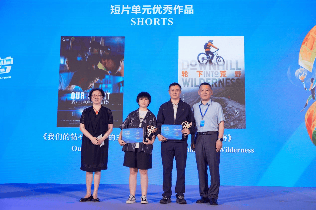 王茂强、王珠为“体育短片”单元入围作品《我们的钻石,我们的主场》、《轮下荒野》颁发奖杯和证书。