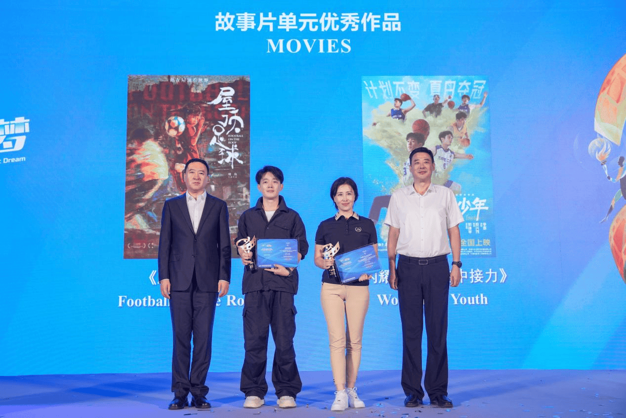 付晓辉、朱勤效为“体育故事片”单元入围作品《屋顶足球》、《闪耀少年之空中接力》颁发奖杯和证书。