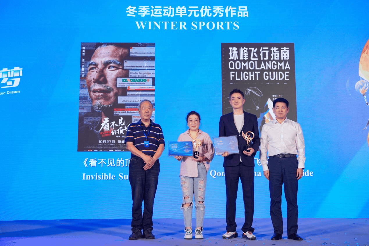陈雪松、单万里为“冬季运动单元”单元入围作品《看不见的顶峰》、《珠峰飞行指南》颁发奖杯和证书。
