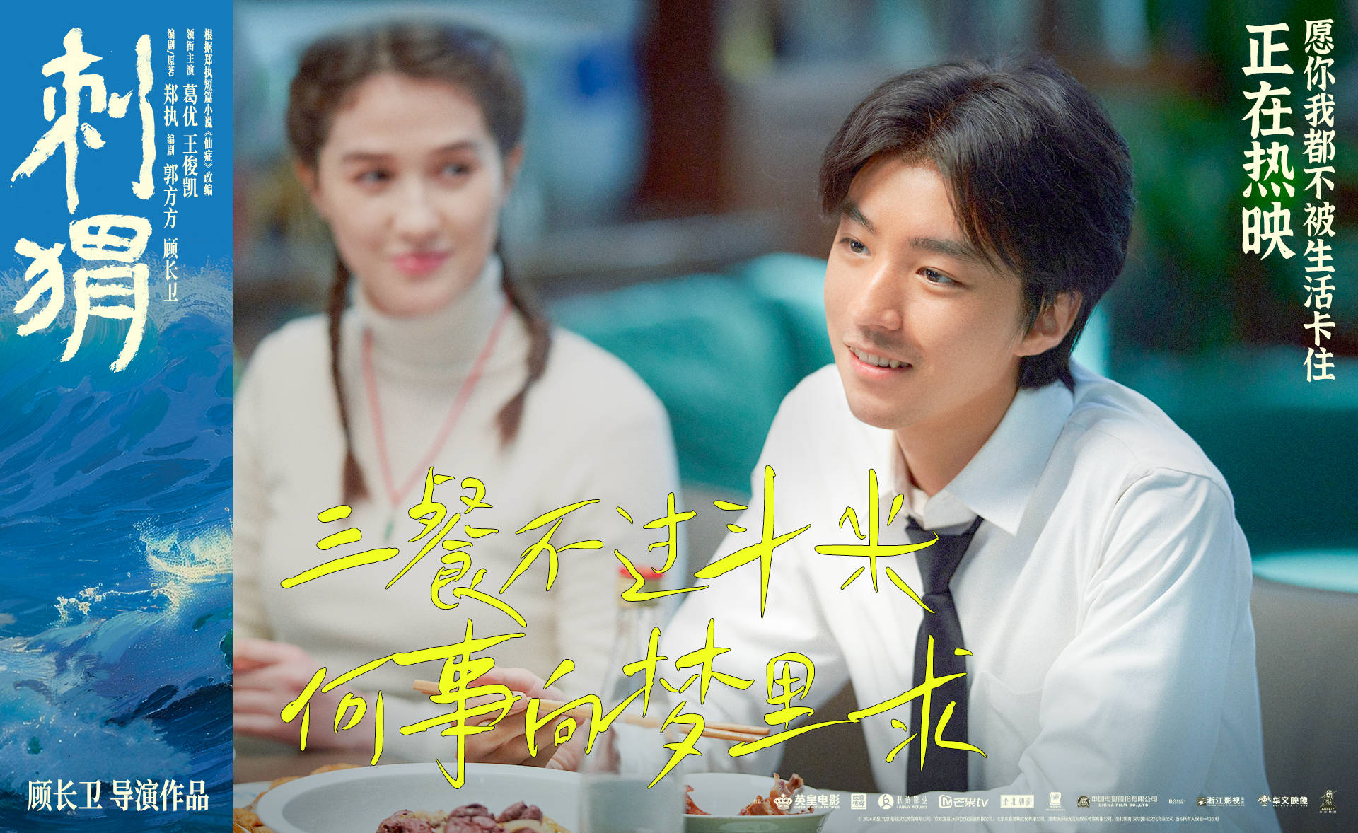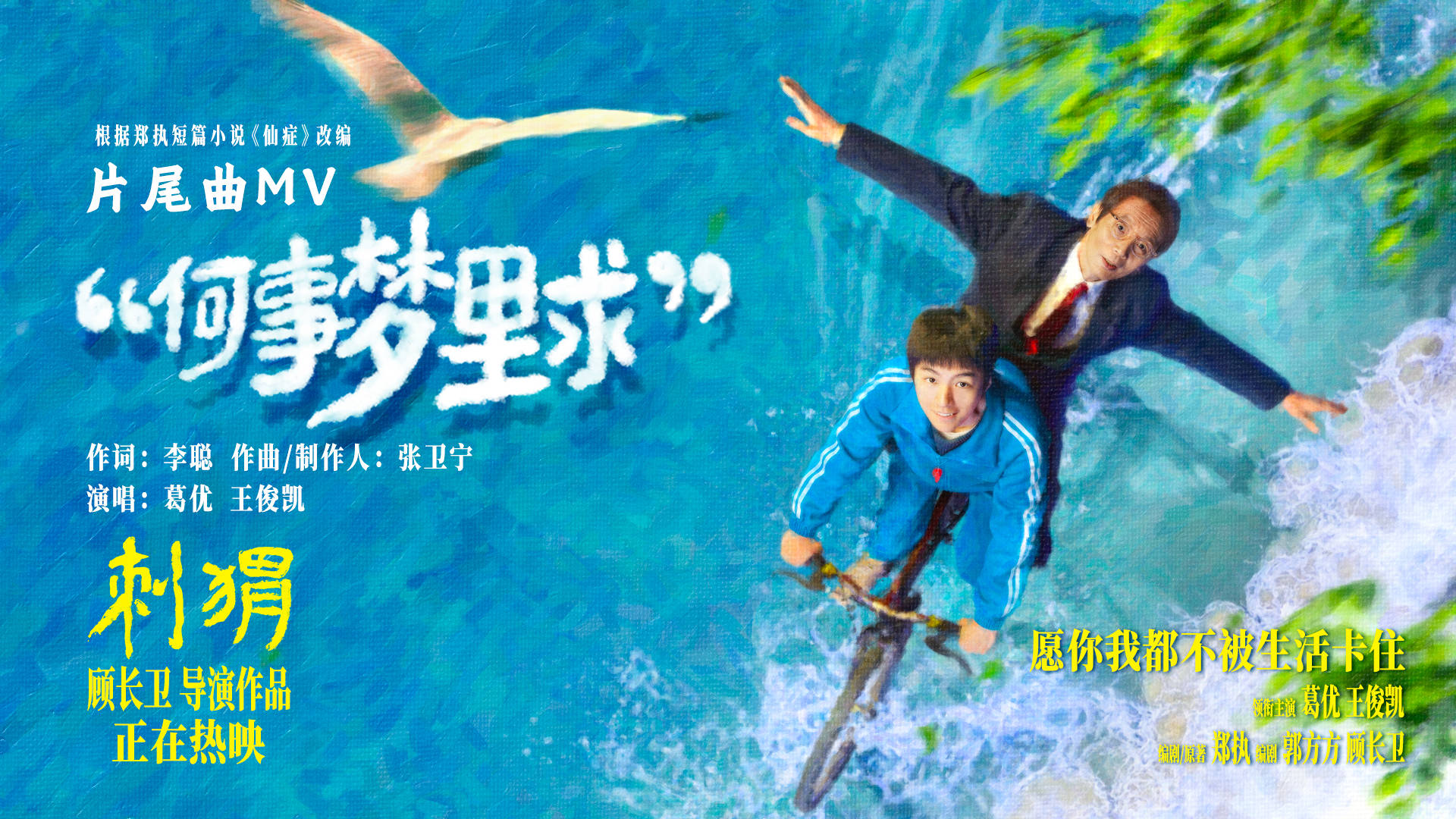 今日,电影发布片尾曲《何事梦里求》MV,伴随着轻快悠扬的音乐,葛优搭档王俊凯惊喜合唱,将王战团与周正的人生态度向观众娓娓道来。作为大多数人眼中的“异类”,他们的人生屡屡被“卡住”,王战团行事荒诞不经,常被视作“疯子”,而周正自幼身患口吃,也被家人当成“病人”看待。但他们也凭借着一份难得的清醒,让被“卡住”的人生得以重新找到出口。他们并未就此沉溺于周遭冷眼,也并未在辛酸往事中困守不前,正如歌词所唱,“烈酒一口入喉,敬往事它不可留,三餐不过斗米,何事向梦里求”,知己相伴,将辛酸往事一笑而过,抛却内耗和纷扰,难得糊涂,乐得逍遥,不改赤子之心,依然向往心里的“太平洋”,不求人人皆懂,只求彼此相惜,“只愿一醉方休,再笑谈那爱与愁”。