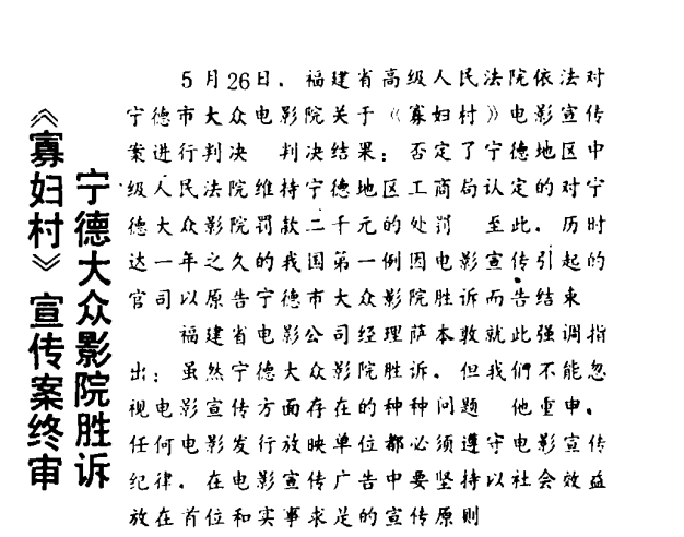 一时之间,《寡妇村》场场爆满,甚至有影院卖站票,“黄牛票”更是卖到了2元一张,据电影发行部门初步统计,该片的上座率和票房收入创下了1989年以来的最高纪录。之后,该片也因此导致的宣传问题卷入官司,成为中国第一例“电影宣传诉案”。