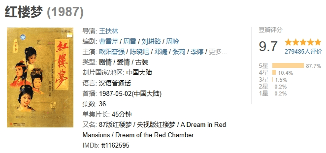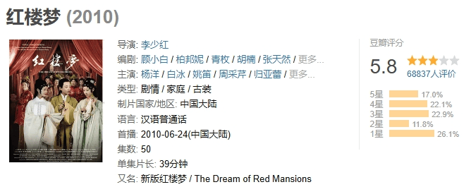 虽然这部影版《红楼梦之金玉良缘》还未在豆瓣开分。