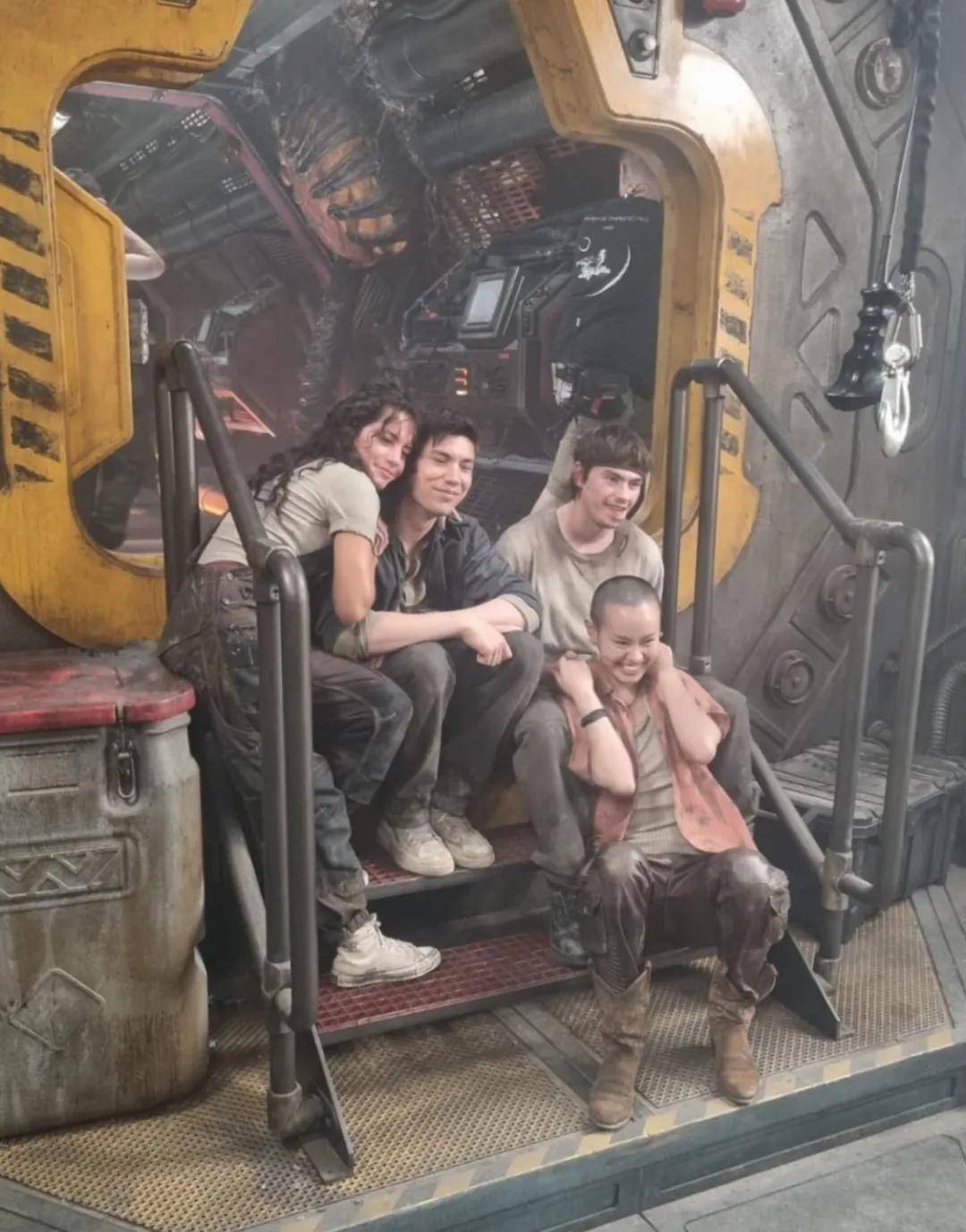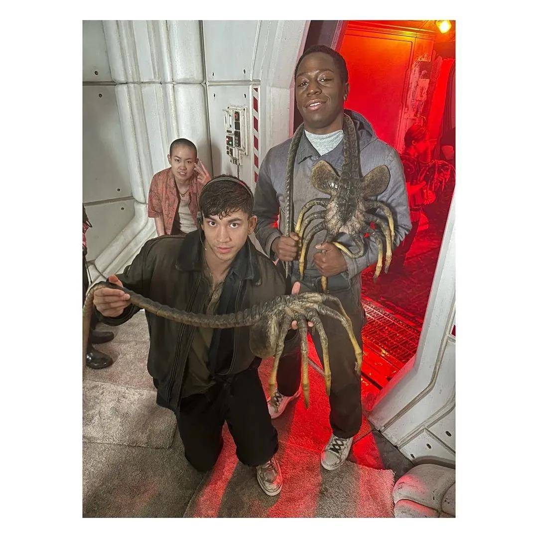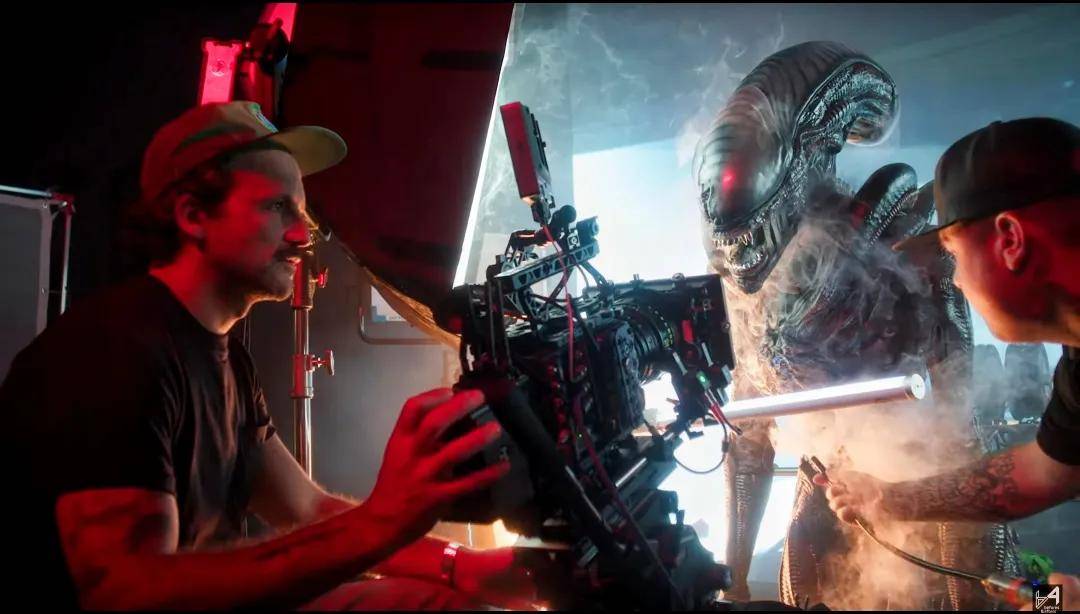 关于导演提到过的“片场皆实景”,卡莉异常兴奋,“能与这些‘真实的’生物一同表演太棒了,因为你无需想象什么,它们就真实地存在并吓到你,跟异形本形一起演戏总有种实在的惊吓。我们没有一场戏是在绿幕前拍的,没有一场戏我需要盯着一颗网球表演,所有你看到的都是真实的——就像我们去到了异形版迪士尼乐园。我们能真的触摸到墙壁和大门,进入实验室,太不可思议了,这都是费德极力争取来的。