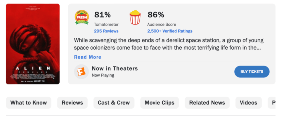 在系列内部,《异形:夺命舰》的成绩足以排到次席,仅低于2012年亮相的《普罗米修斯》,后者首映曾进账5105万美元。而在上世纪出炉的作品中,首周末都落在2千万美元以下,但彼时的院线放映周期远长于当下,且未考虑数十年来的通货膨胀因素。若以R级的维度视之,《异形:夺命舰》在今年则高居前三甲,只有《死侍与金刚狼》(2.11亿美元)和《绝地战警:生死与共》(5653万美元)的开局更佳。