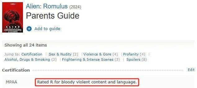 毕竟,《异形》系列在北美一直以来都被评为R级。