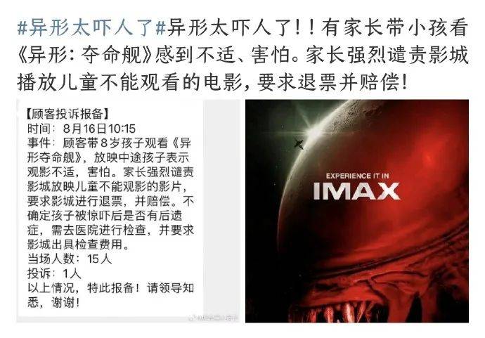 这位家长认为,孩子被吓到是影院的责任,并要求赔偿。
