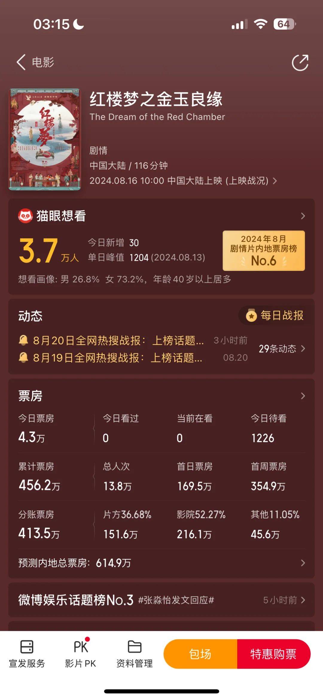 但确实也没想到,上映后会是如此惨淡、甚至于一败涂地的情况。
