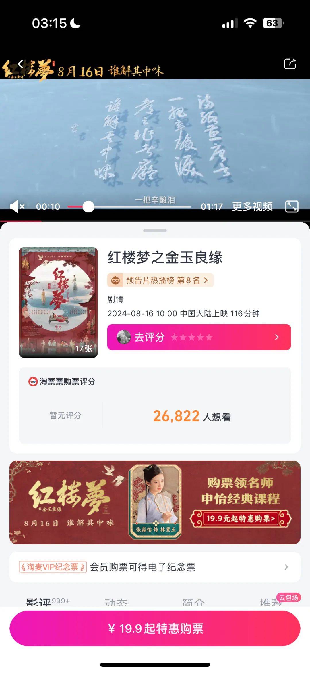 截至目前,不仅在豆瓣还没有开分,连在其他的售票平台都没有开分。