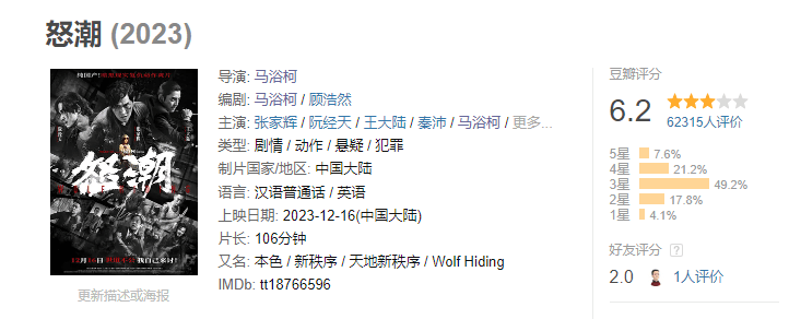 就在去年年底,有部几乎是一模一样的班底,拍摄了一部《怒潮》。