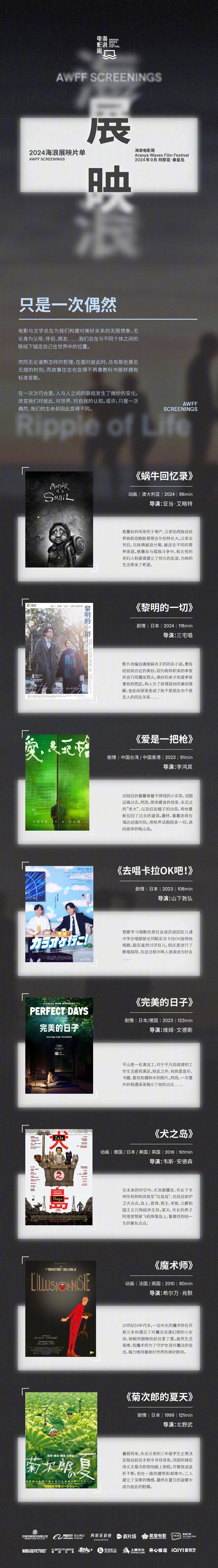 搜狐娱乐讯 2024年海浪电影周发布海浪展映片单,「是Live也是Life」「超同步轨道」「黑夜之心」「一万次荡漾」「只是一次偶然」5个影像单元39部中外影片,将于6大放映地进行放映,8月26日12点开启售票。