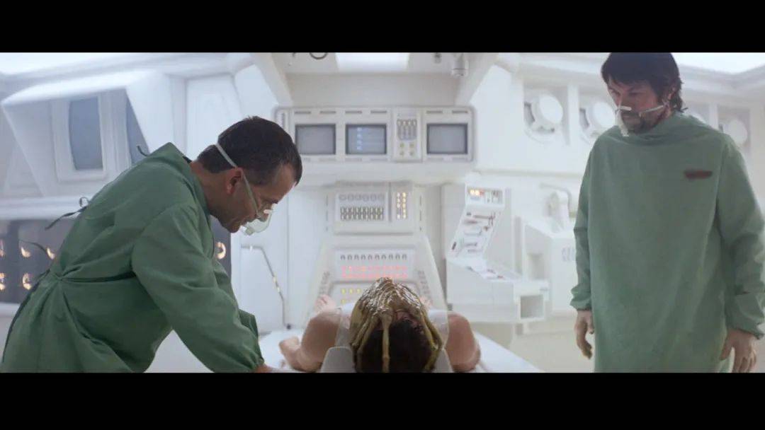 而是在唯一的飞行器中,诞生了人形异形,这也是整个系列中的第二胎人形异形,这次的人形异形与人类更加相似。这里其实在探索另一个命题,那就是生命从卵生转变成胎生的可行性。生化人艾什是这个课题的推动者,最终结果也如他所愿。