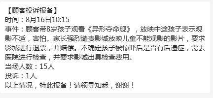 电影映后第二天的话题无不是#异形吓坏8岁小孩家长投诉影城#、#看异形别带小孩#、#异形 屏住呼吸#等相关词条。不少社交平台更是流传影院因被投诉取消放映,随后相关影院给予澄清。