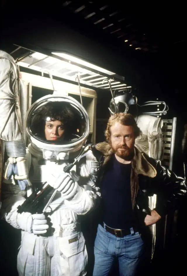《异形》拍摄现场的西格妮·韦弗与雷德利·斯科特