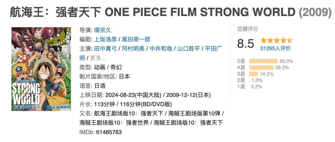 最新的柯南剧场版,也是上周上映的,评价还行,所以也上榜了。