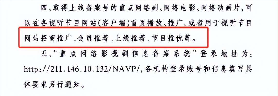 需要说明的是,并非取得备案号后就可以立马播放,这中间还要经过一系列流程,比如进行各视听节目网站(客户端)首页播放、推广,或者用于网站的招商推广、节目推优、上线推荐、会员推荐等活动。