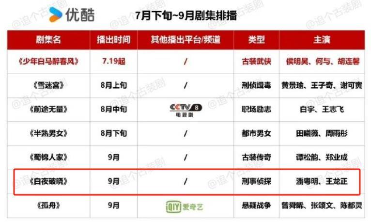 这张待播图中,《白夜破晓》赫然在列,播出时间在9月份。