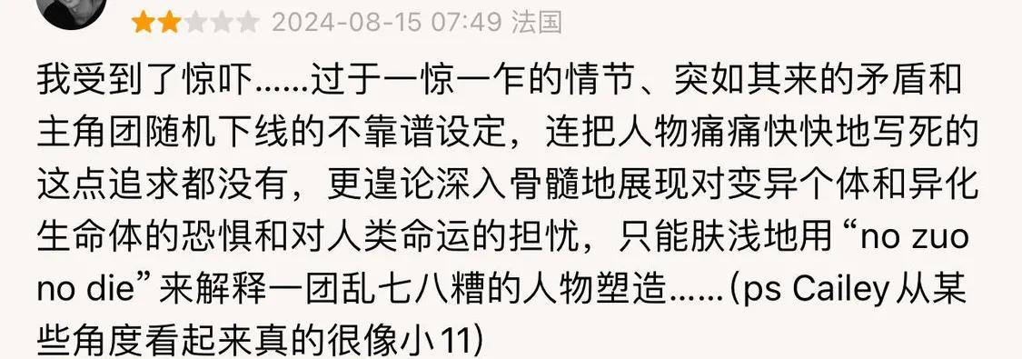 反观一些不喜欢恐怖类型电影的观众则表示,剧情过于一惊一乍,人物塑造乱七八糟。