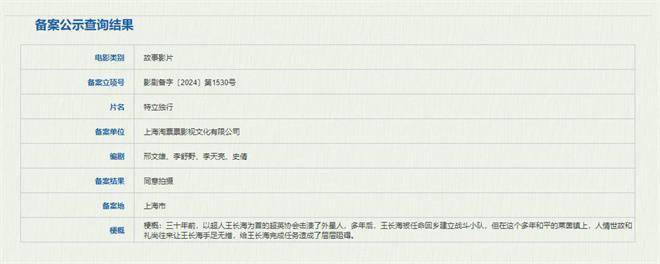 1905电影网讯8月16日,国家电影局发布关于2024年7月上全国电影剧本(梗概)备案、立项公示的通知。由邢文雄、李舒野、李天亮、史倩担任编剧的电影《特立独行》备案立项,备案单位为上海淘票票影视文化有限公司。