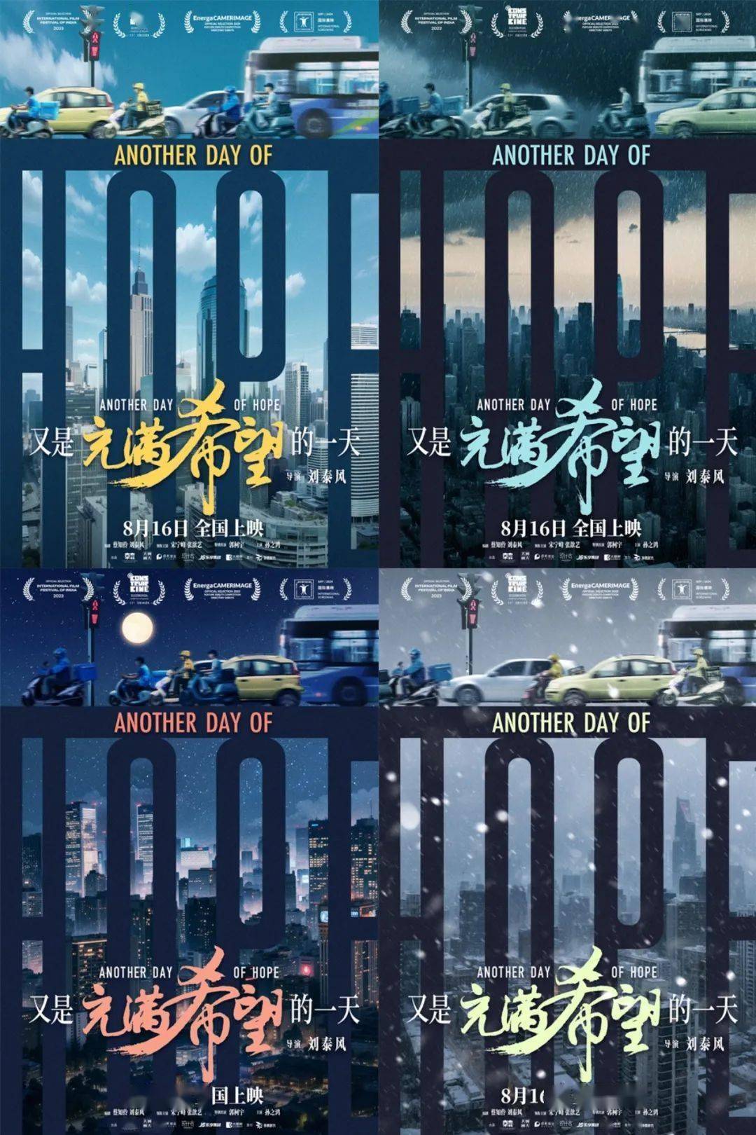 电影《又是充满希望的一天》发布“披星戴月”版主题海报。系列海报结合影片的现实主义题材,将多种元素有机组合,传递“生活不会辜负每一个披星戴月、日夜兼程的赶路人”,“希望总在前方”的美好祝愿。影片由刘泰风执导,宋宁峰、张歆艺领衔主演,郭柯宇特别出演,孙之鸿、金珈、刘奕铁、刘亦然主演,将于8月16日正式上映。
