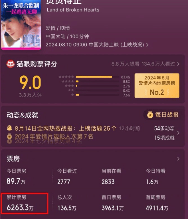 果然,《负负得正》上映后票房不佳,涨势缓慢,口碑也不好,没法形成自来水热度。其实这些倒也正常,流量明星的粉丝人气,没法形成有效的票房支撑,这一点在很多流量明星身上应验过,这不怪朱一龙。