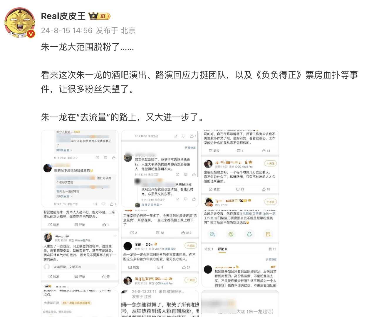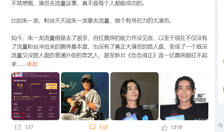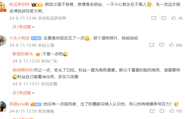 其实真的要票房好,还是要路人缘好,很多观众看电影,并不认明星,只为作品和效果买单,这一点,粉丝居然也很清醒,并不会盲目为偶像的电影买单。但这次朱一龙的票房扑街,就摆在没有吸引到路人粉,而粉丝也不给力,反而对票房扑街很失望。再加上之前宣发方式出现一些问题,粉丝觉得片方把注意力骗到酒吧献唱,但朱一龙及工作室方面也没觉得不妥,让粉丝很失望,再加上其他抱怨和误会,于是出现了粉丝脱粉回踩的情况。没想到一直吵着让偶像去流量,最终迎来的是脱粉。
