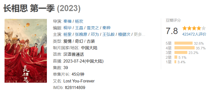 《长相思2》高开低走,现在豆瓣评分都落到6.0了,勉强才保住及格线。