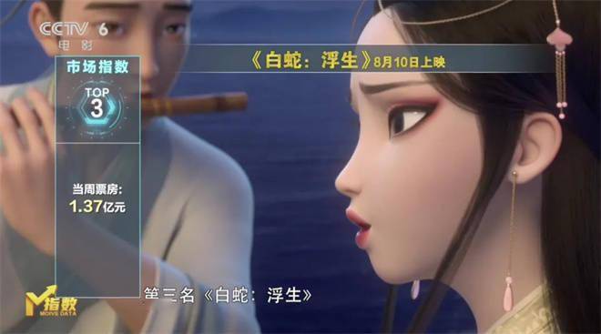 其中《白蛇:浮生》“电影频道融媒指数”单项指标第一。作为追光动画IP系列续作,白娘子与许仙的旷世绝恋具备牢固的观众基础,影片上映前夕全球首映礼、融媒体直播造势,单个物料视频点赞量破40万,上映当日主题曲MV和七夕芭莎大片发布,社交媒体热度达到峰值。