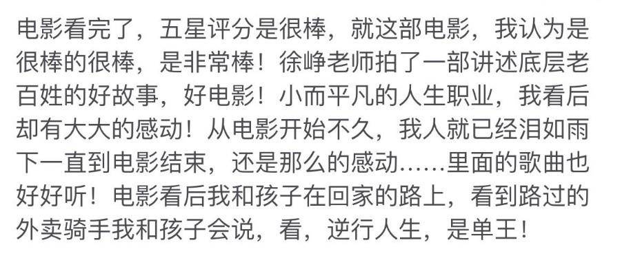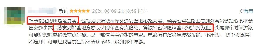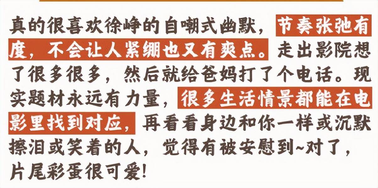 “节奏张弛有度,不会让人紧绷又有爽点,很多生活情景都能在电影里找到对应。真实题材永远有力量。”