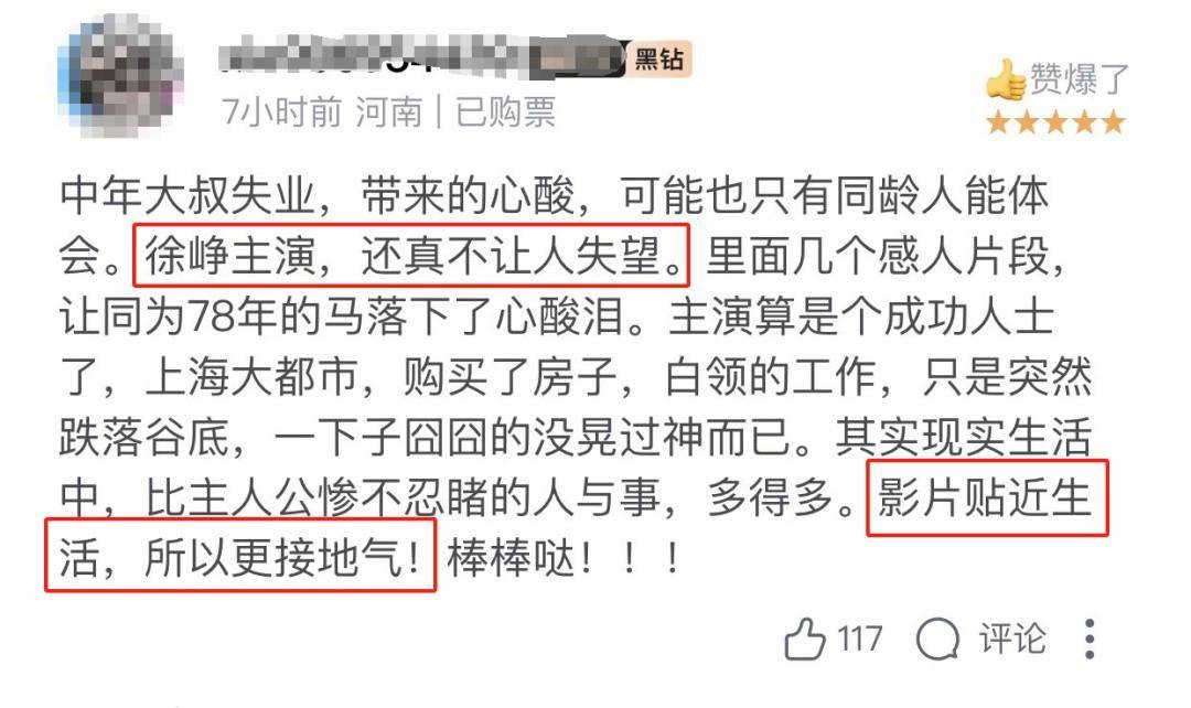 “徐峥主演从不让人失望!因为贴近生活,所以更接地气。”