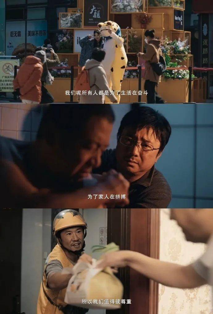 他在大厂被裁员时的愤怒,和妻子坦诚后的脆弱,经历外卖员各种状况时的无奈,嘶吼,绝望。
