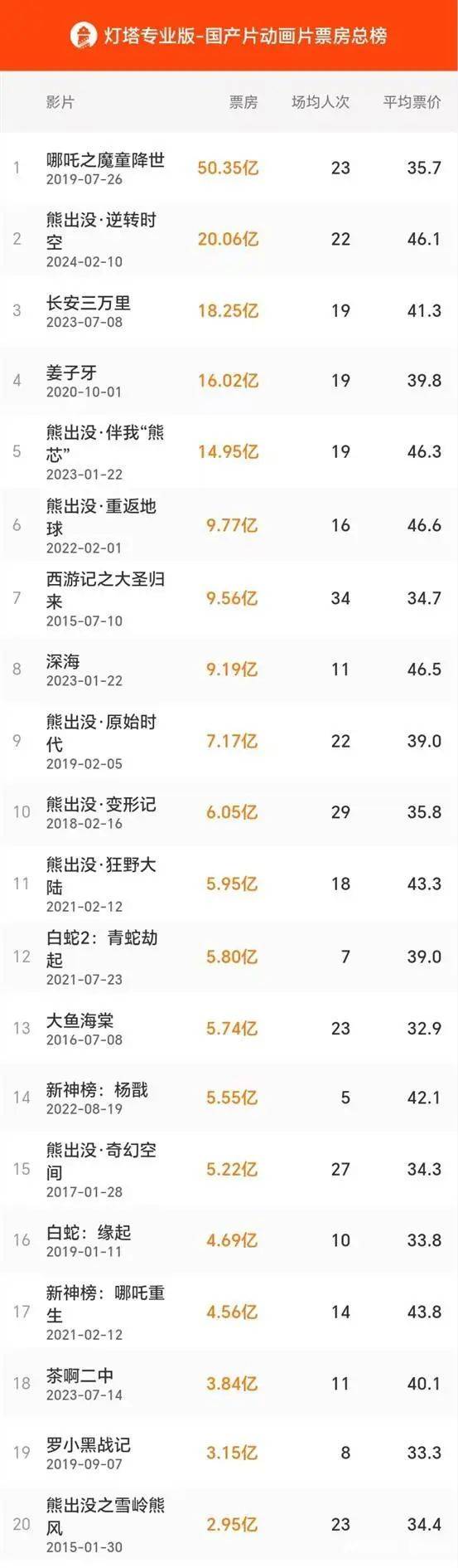 在国内做一部原创动画有多难?据灯塔专业版统计,国产动画电影票房榜前20,有8部“熊出没”大电影,4部封神IP,2部白蛇IP,1部西游IP,还有2部电影改编自高分番剧。前20榜单中,只有三部电影算得上原创,分别是《长安三万里》《深海》《大鱼海棠》。