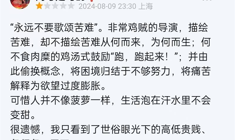 说白了,还是创作者没有真的站在主角的立场,以至于下沉度不够,无法与主角人物群体真正共情。