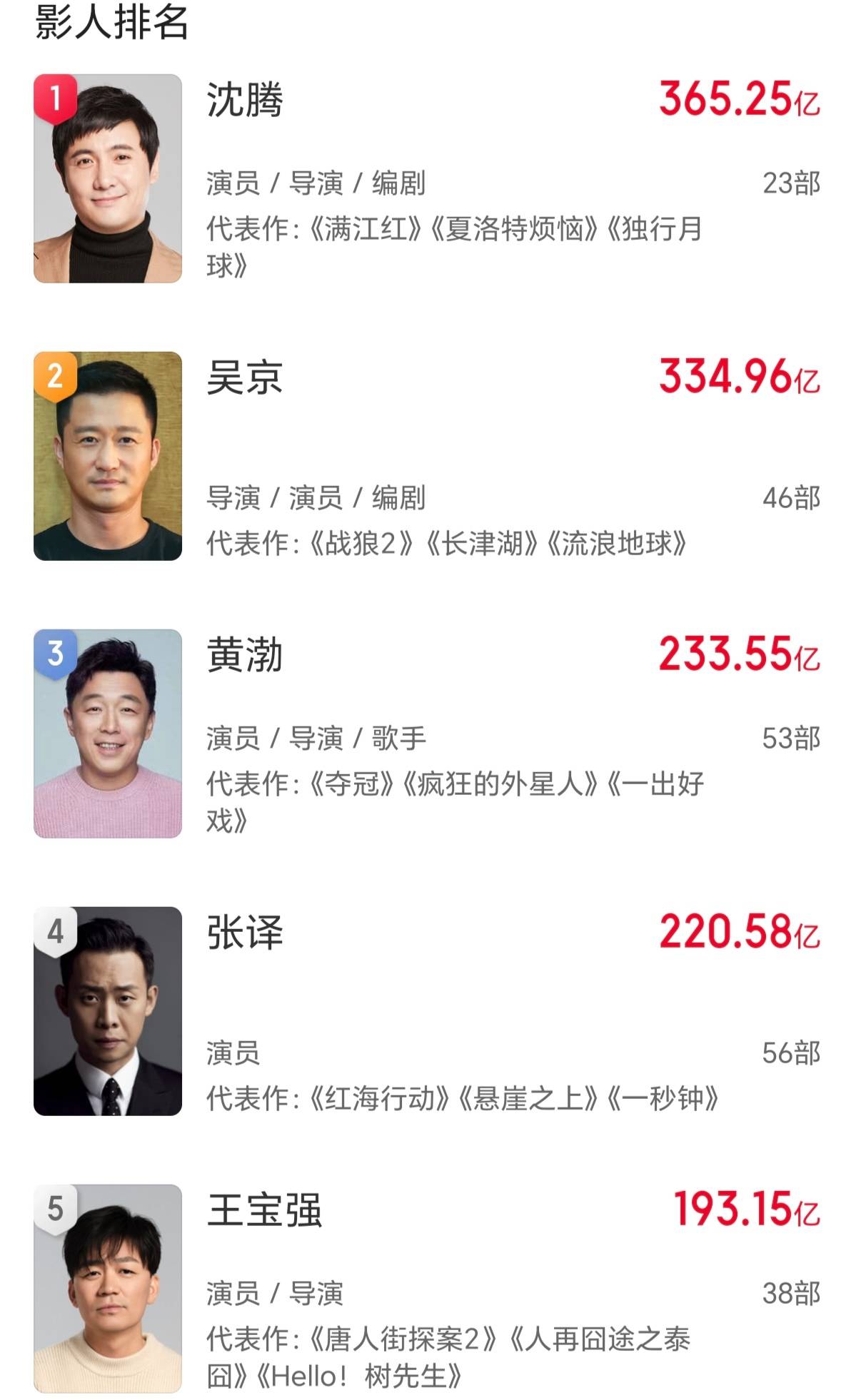 根据猫眼专业版数据,沈腾、马丽现已分别成为中国票房最高的男演员和女演员。沈腾主演电影总票房超365亿元,远远甩开了第二名吴京的335亿元。马丽主演电影总票房超225亿元,仅次于沈腾、吴京、黄渤,是唯一跻身票房榜Top 5的女演员。