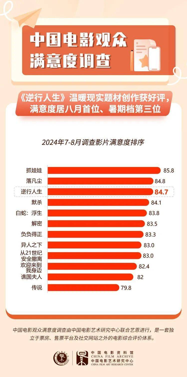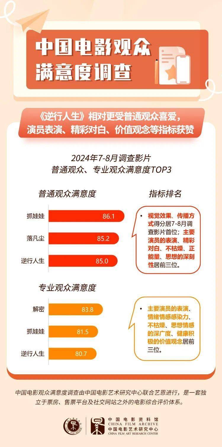 《逆行人生》以幽默、真实的手法刻画外卖骑手这一职业群像,温暖现实题材内容引发大众共鸣,单片满意度居截至目前暑期档第三位,在8月以来调查的5部影片中居首位,主要演员的表演、精彩对白、价值观念、传播方式等细分指标得分亮眼。