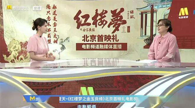 与电影频道主持人李丹坐镇电影频道直播间,中国电影评论学会研究员、中国视协理论评论委员会副会长高小立专业评述影片改编,认为胡玫导演尊重原著,没有被网络上对王熙凤等人物的现代化解读而左右,反而极度致力于还原原著精髓,片中石狮子等反复出现的镜头意象都极具寓意,暗合封建礼教对主角爱情的摧残,用影像复活文学化概念。