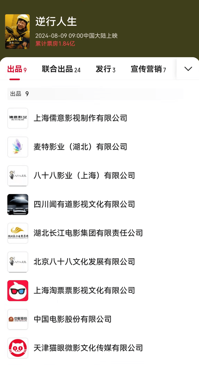 值得一提的是,表面上看,徐峥自编自导的这部电影,他并非主投。得益于自己在电影圈的声望和影响力,徐峥拍片差不多是一呼百应,《逆行人生》有9个出品方和24家联合出品方,资方挤破头想参与进来分一杯羹。