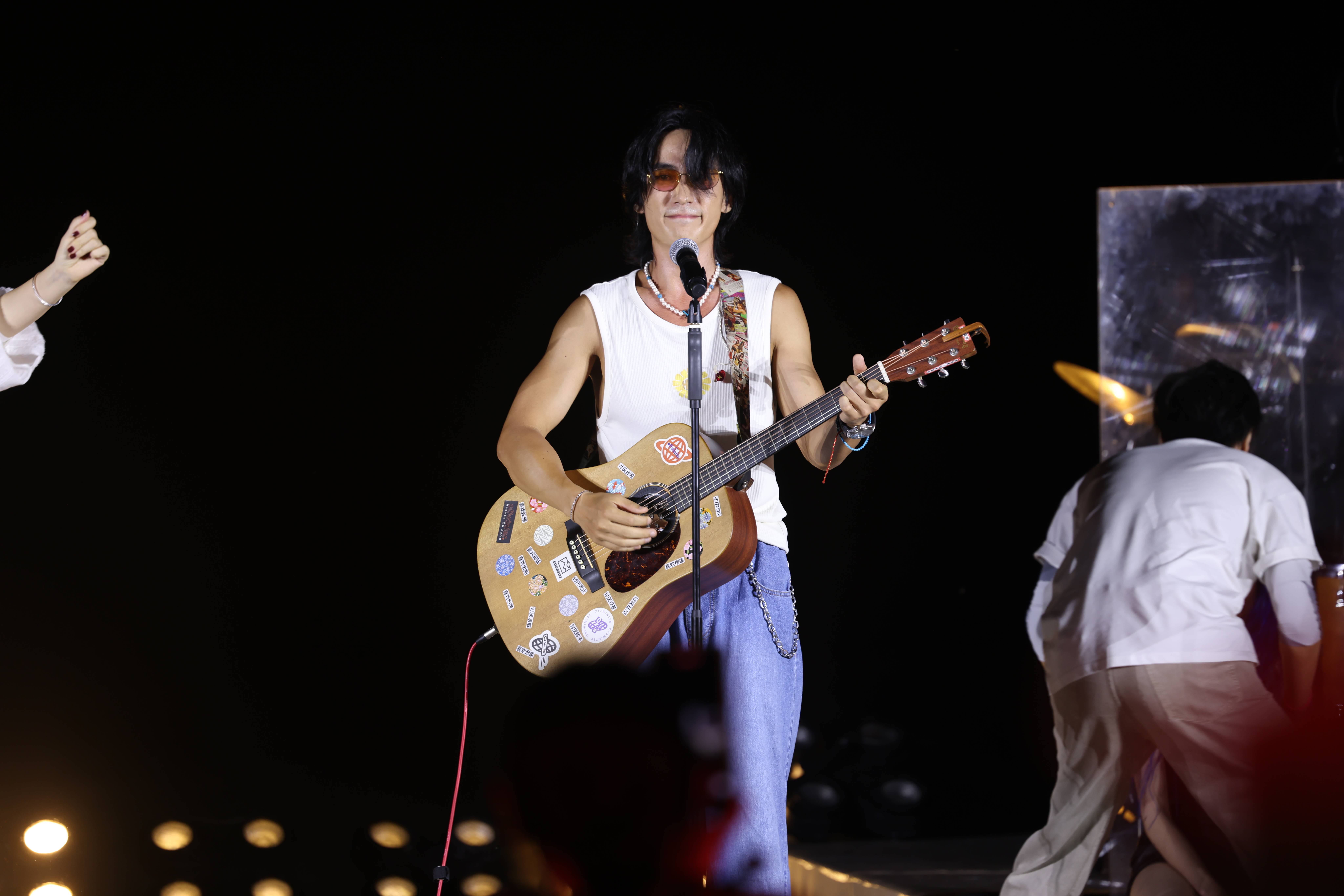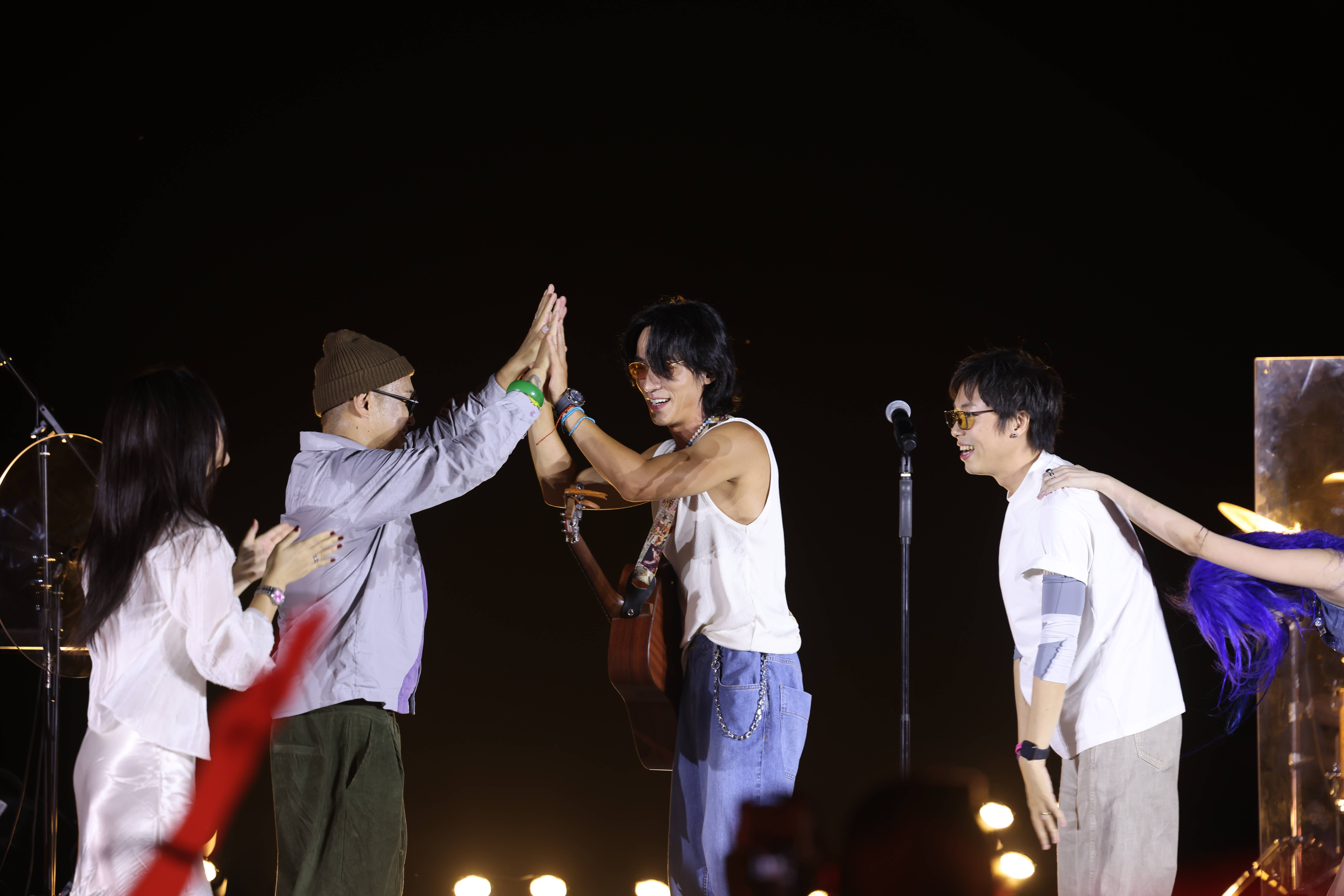 朱一龙说来到海边唱歌的场景像做梦一样。“我自己总会想象到沙滩、海、蓝天、落日,还有这么多喜欢的音乐人大家聚在一起,这对我来说是一次冒险吧,像《负负得正》(的主人公)一样,我很开心能加入到这样一个剧组,大家不断地去冒险,不断地去挑战。我们今天的主题是浪漫、落日、微醺,我现在已经微醺了。”