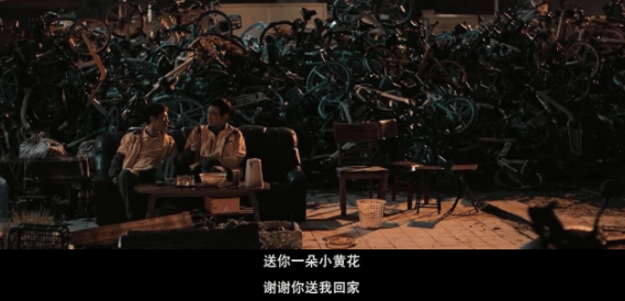 老抠随手摘了一朵小黄花送给高志垒,在废墟之前,这一幕自然,动人,散发着朴素的浪漫气息。