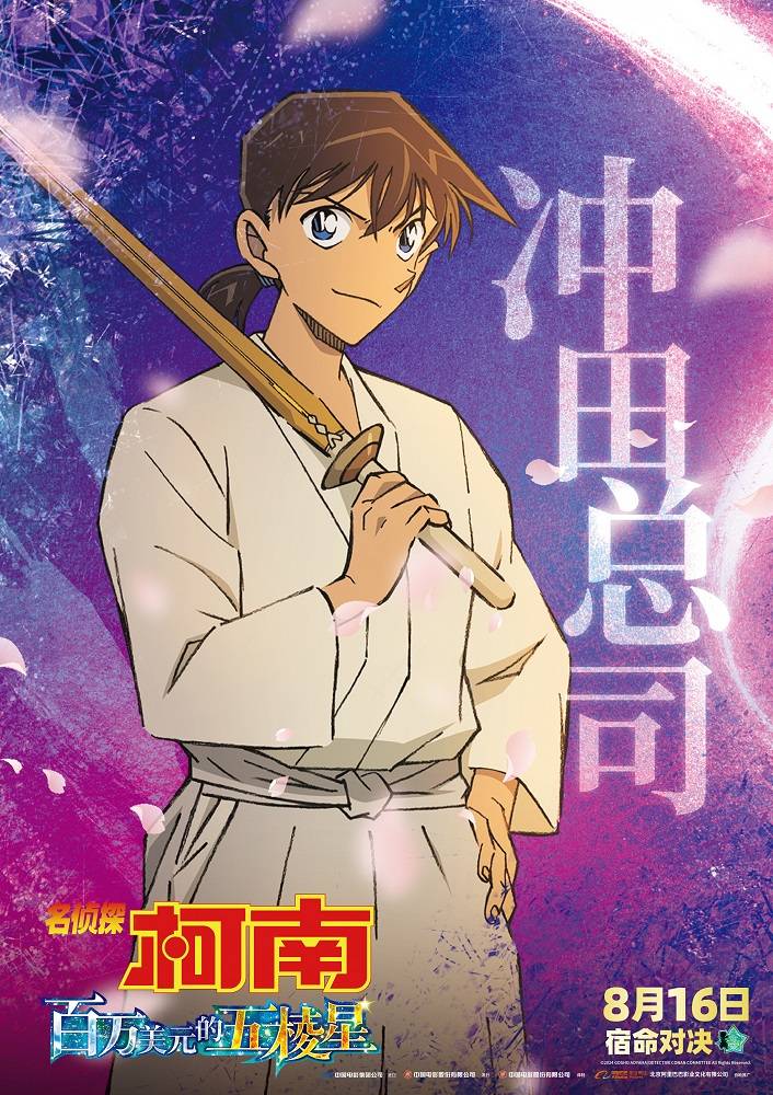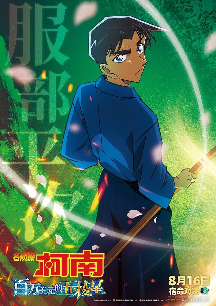 影片今日发布角色海报,多位角色出场。“身体虽然变小,大脑依旧灵活”的名侦探柯南,“能文也能武”的关西名侦探服部平次,两位侦探将再度携手,而怪盗基德手扶帽檐邪魅一笑,仿佛已经胜券在握,这一场侦探与怪盗的对决一触即发!还有毛利兰与远山和叶这对好闺蜜登场,和叶的表情忧心忡忡,似乎充满着不安,而开朗的小兰则鼓励着和叶。除此之外,大冈红叶与她的管家伊织无我,以及与工藤新一长相十分相似的剑道少年冲田总司也纷纷亮相,令人十分期待这一次集悬念与浪漫于一体的多方混战事件。