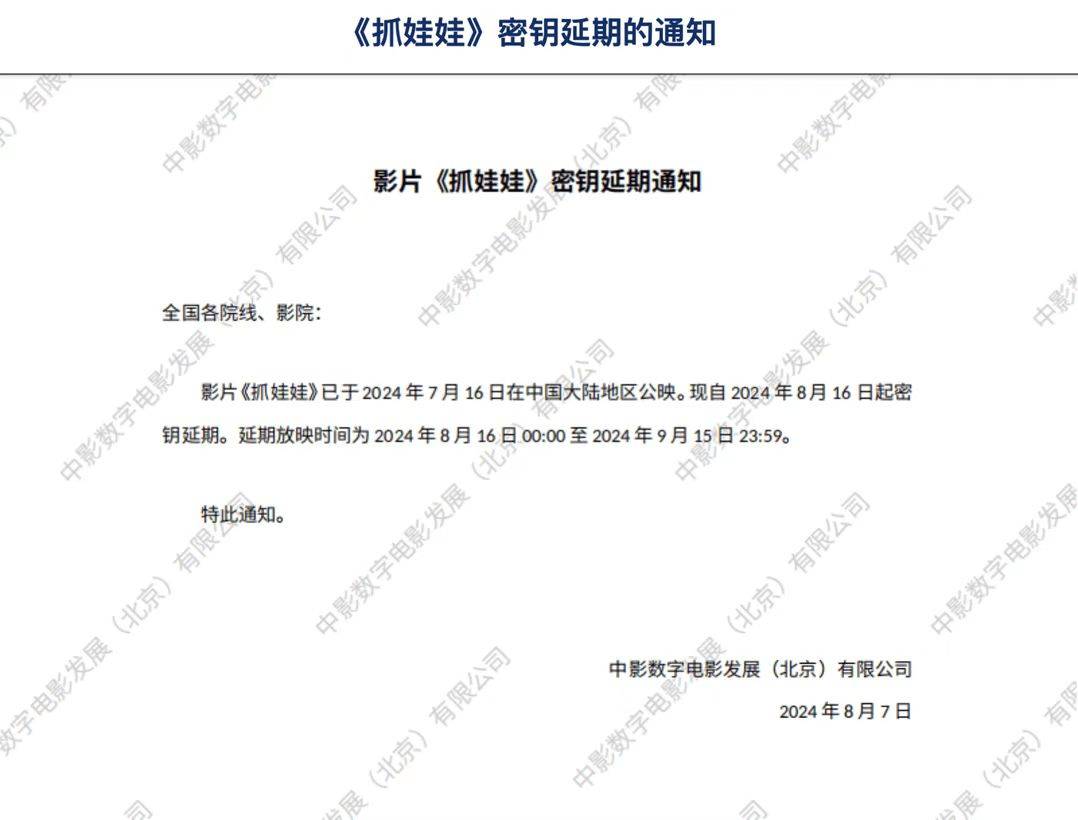 闫非、彭大魔执导,沈腾、马丽领衔主演的暑期档喜剧电影《抓娃娃》密钥延期,将延长上映至9月15日横跨暑期档。据猫眼专业版数据,截至当前,影片上映第23天,累计票房已达27.6亿。暂居2024年度内地电影票房榜第三位。