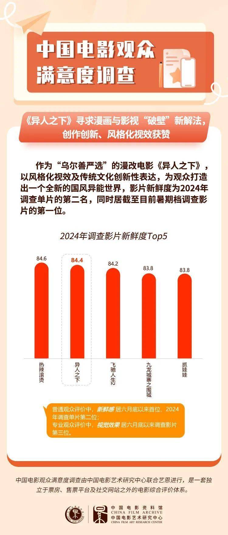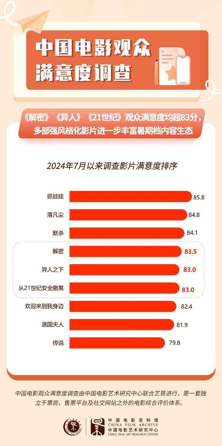 7月底以来, 《异人之下》 《从21世纪安全撤离》 《解密》 等多部强风格化新片接连上映,给观众带来全新且独特的观影体验,观众满意度都超过了83分。这些影片在电影创作上进行创新探索,以视觉奇观、次元碰撞、“精神状态”超前等引发市场热议,得到不同观众的喜爱和高满意度评价,对电影多元化创作均形成有益探索。