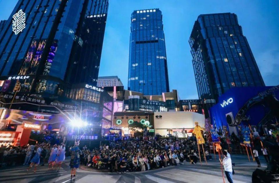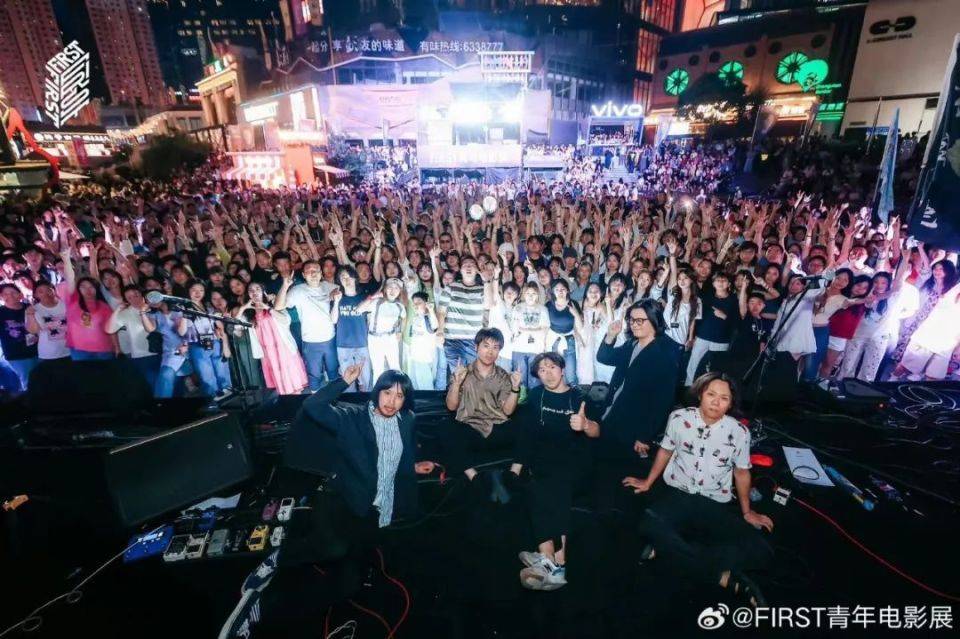 深夜的地下通道,年轻人们合唱《海阔天空》;锅庄广场放映着《斗牛》《狗阵》,台下坐满了专注的观众;回春丹、八仙饭店和鸟撞等乐队在台上表演,台下舞动着各种旗子。音乐节和电影节在这里交融,共同创造了独属于FIRST氛围。