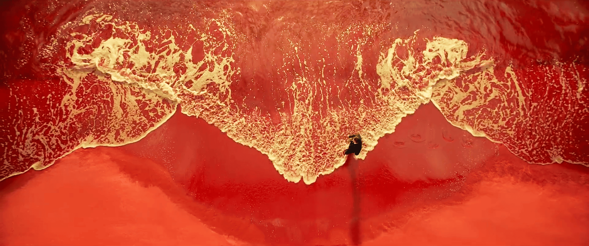 穿着比基尼的金发美女,麦田里奔涌而来的女兵,象征欲望的红色大门。