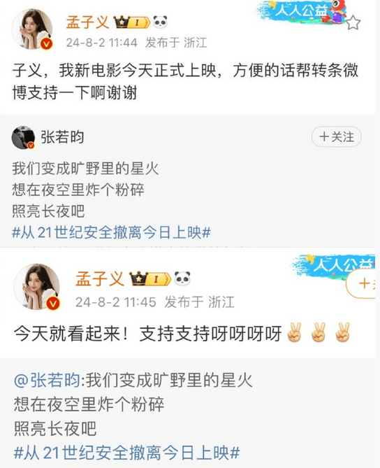 网友调侃:孟姐这波算是有效宣传了,都去看《从21世纪安全撤离》吧!还有网友说:“说张若昀没吃亏,他找对人了,这次上热搜了,变相宣传了一下电影。”对此悦凯娱乐和孟子义工作室称,是工作人员转发失误,悦凯将包场《从21世纪安全撤离》。