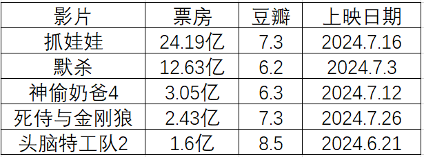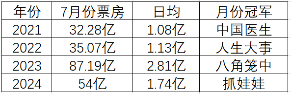7月份正式落幕,意味着2024年暑期档正式进行了一半,理论上其实过了一大半。