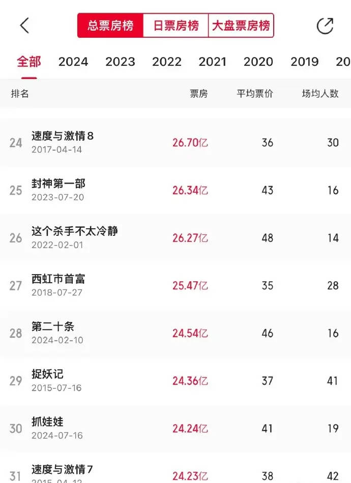 搜狐娱乐讯 8月1日,据猫眼专业版数据显示,沈腾马丽主演的电影《抓娃娃》上映17天,总票房24.24亿超过《速度与激情7》,进入中国影史票房榜前30名,有望超过《西虹市首富》的25.47亿票房成绩。