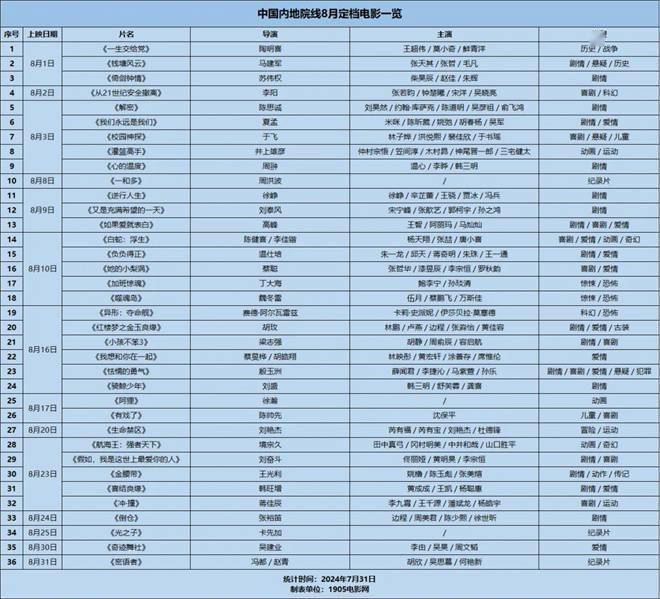 1905电影网专稿 7月渐渐来到尾声,暑期档已然过半,等合力撑起影市。截至发稿,2024年暑期档票房已破75亿。精彩还在继续。进入下半场,超过30部新片将于8月开画。