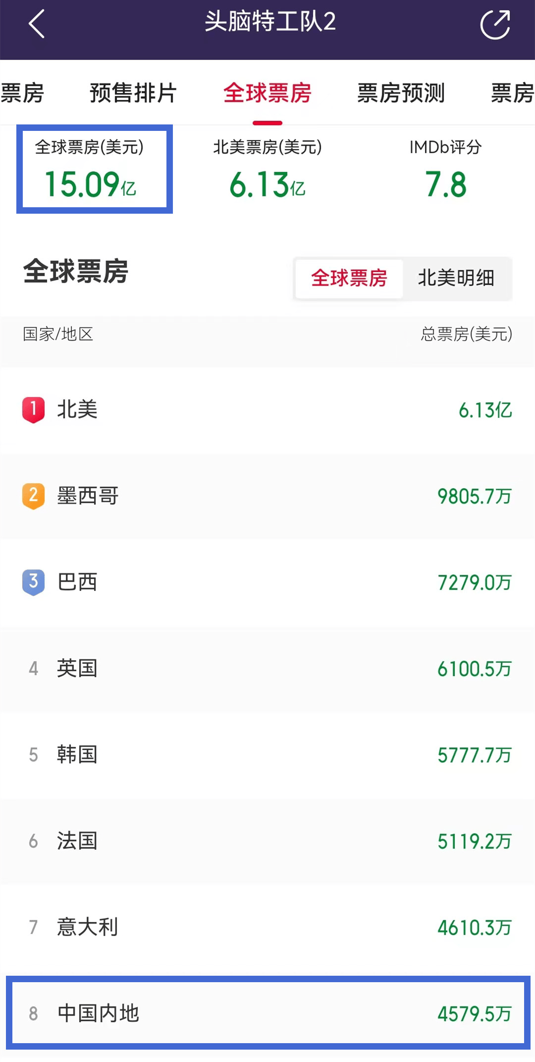 可是它在内地的票房只有3.32亿人民币,仅占其全球票房的3.03%。该片的内地票房在全球各大国家和地区中,名列第八。