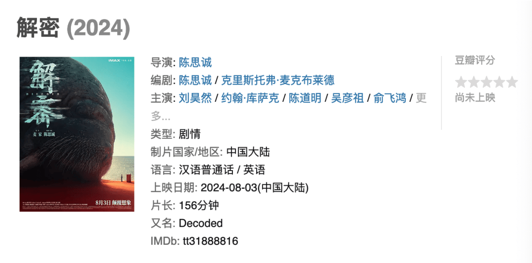 影片根据麦家同名小说改编,阵容也很不错,刘昊然、陈道明、吴彦祖等共同出演,约翰·库萨克也加盟了。
